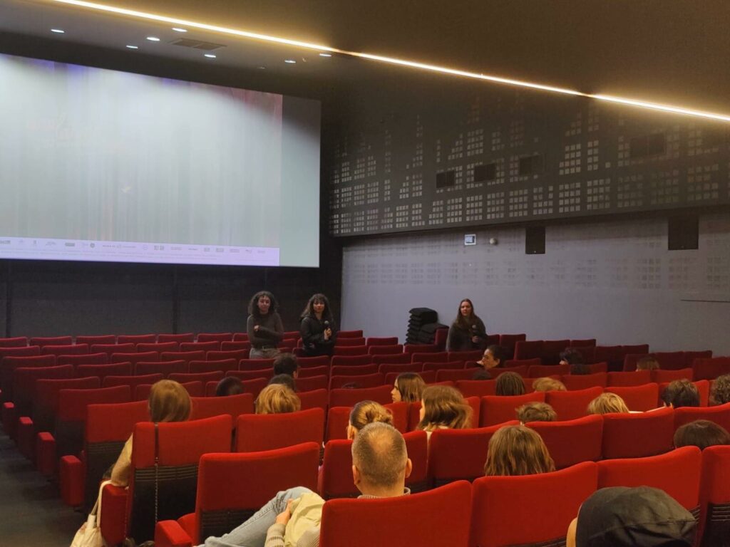 Un groupe d’étudiant·e·s du master méditation culturelle et études visuelles de l’Université Jean Jaurès à Toulouse animent des médiations dans le cadre des séances scolaires du film Los silencios de Beatriz Seigner.
